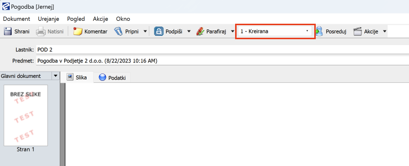 Kreiranje zunanjega statusa dokumenta