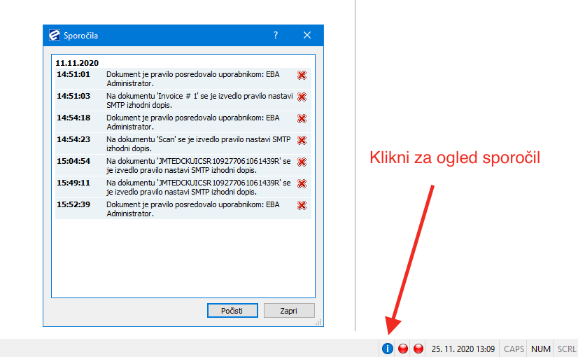 “Če uporabnik ni prijavljen pošlji sporočilo po elektronski pošti” pomeni, da bo uporabnik dobil obvestilo po elektronski pošti, če ni prijavljen v EBA DMS. “Vedno pošlji sporočilo po elektronski pošti” pomeni, da bo uporabnik vedno dobil obvestilo po elektronski pošti, ne glede na to, ali je prijavljen v sistem ali ne.