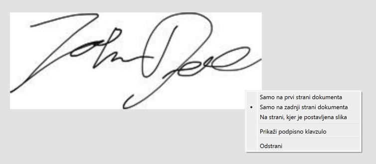 Samo na zadnji strani dokumenta – dodaj podpis samo na zadnjo stran dokumenta