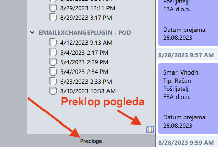 Vsak dokument je v ločenem paketu, ki je označena z datumom in časom prejema.